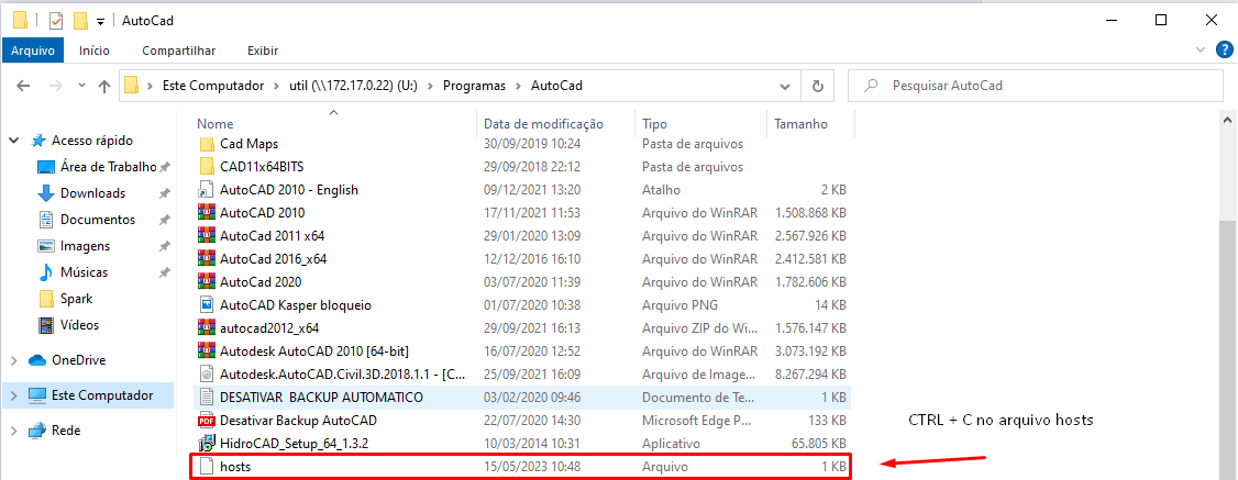 util -> Programas -> AutoCad -> Hosts.