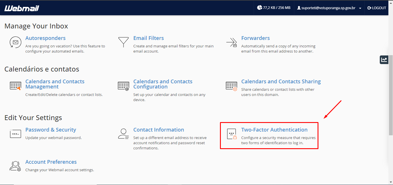 Assim que cair na página principal do email, role a tela até a achar a seguinte opção.