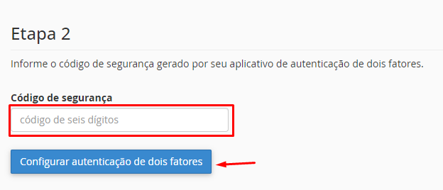 7. No seu aplicativo, selecione a guia do seu email e informe o código de seis dígitos no campo destacado abaixo.