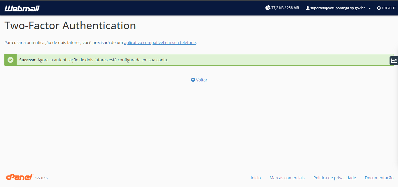 8. Se o código inserido ainda estiver válido, você irá chegar nessa tela.